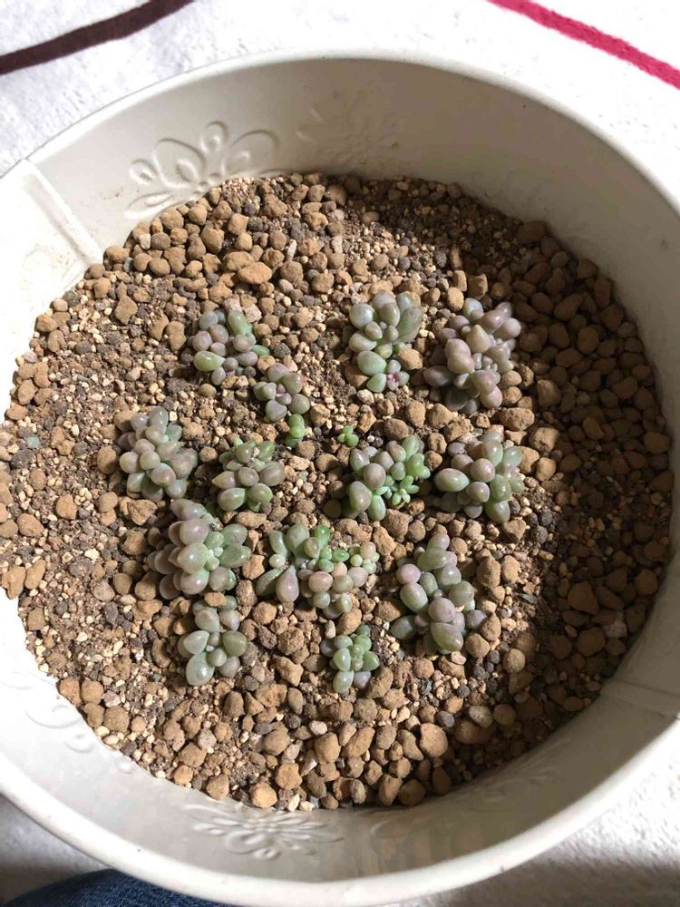 ちょっと手が当たるだけでポロっと葉が取れてしまうけど気にしないでいたら、どんどん増えたし、他の多肉ちゃんの鉢にも生えていたょ🤣🤣🤣