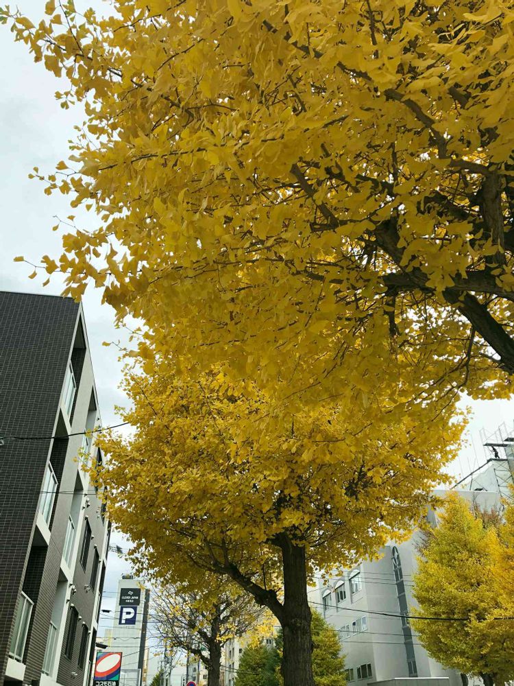 こちらのイチョウ並木はまだ場所によって黄色と緑ともう少しです😌