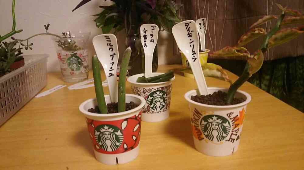 スタバのプリンが出た頃、空きカップにサボテン植えたら可愛いよ、って言われていたけど、植えねーし❗って思ってた。