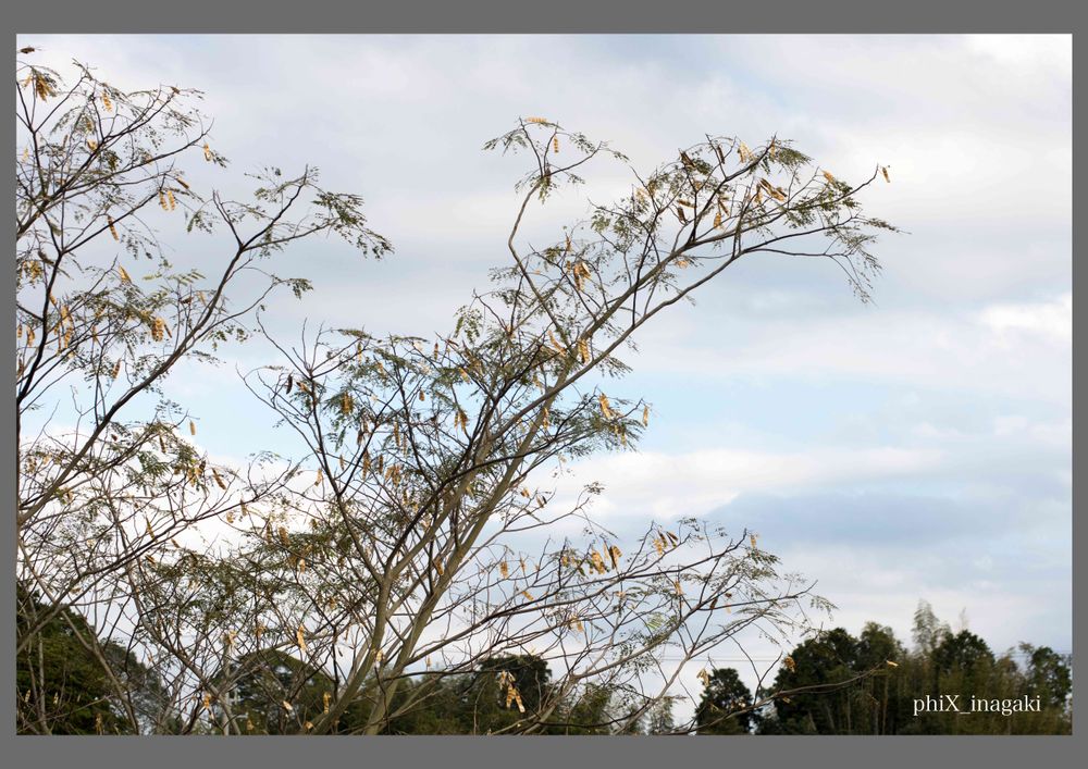ニセアカシアの黄色いマメ 20181103 津市安濃町美濃屋川沿いで撮影。