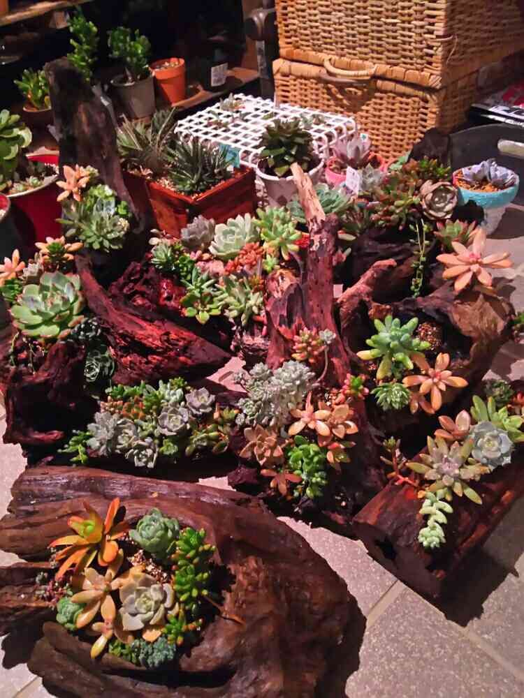 流木は木だから(当然か⁉)水を吸って、濡れ濡れで中の土も乾かないから一堂に集めました🎵