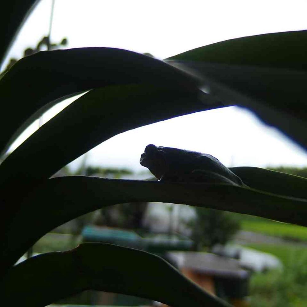 さん、お客様です〜!このカエルあらゆる方向から接写しましたが、全然逃げようとしませんでした^_^;