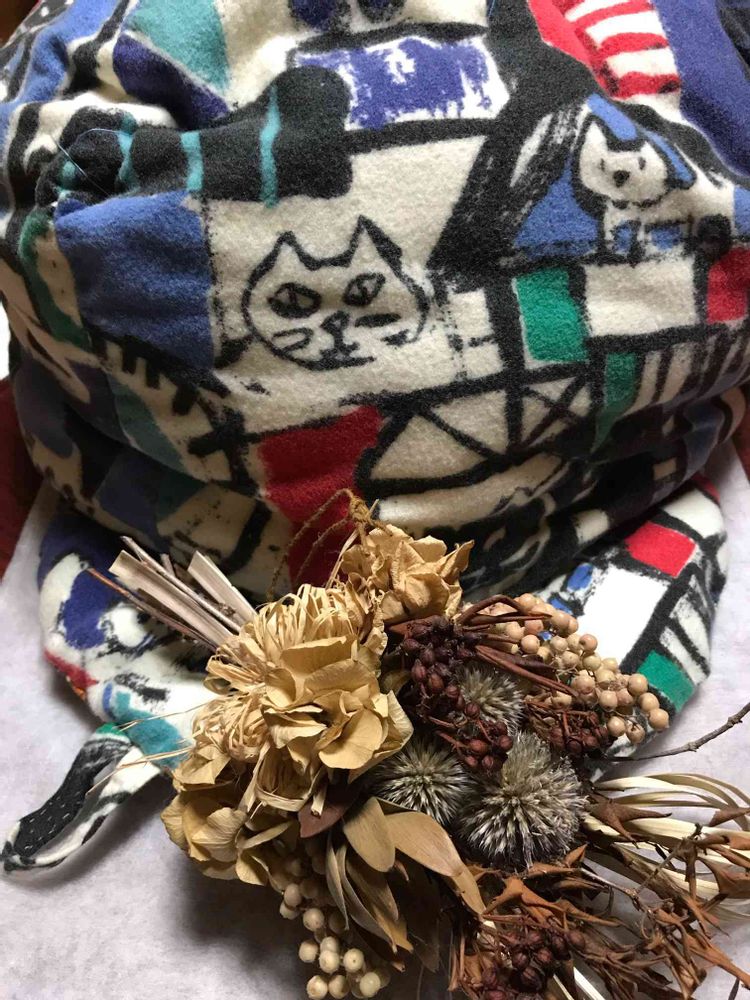 しっかりニャンコ柄でアナベルさんらしい♪ 鍋帽子か~お料理を極力しようとしない私にとっては、知らなかった便利ィグッズです。