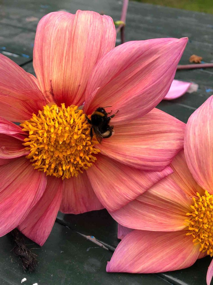そして一つの命が終わってました🌟数日前にダリアをカットしたら、いつも花の間を行ったり来たりしていたハチさん🐝最後まで花粉を集めてました🐝