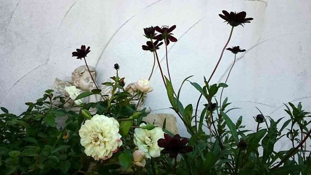 玄関,チョコレートコスモス,ミニ薔薇グリーンアイスの投稿画像