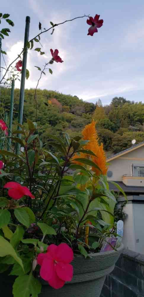 その下では ケイトウとインパチェンスが 鮮やかに浮かぶ