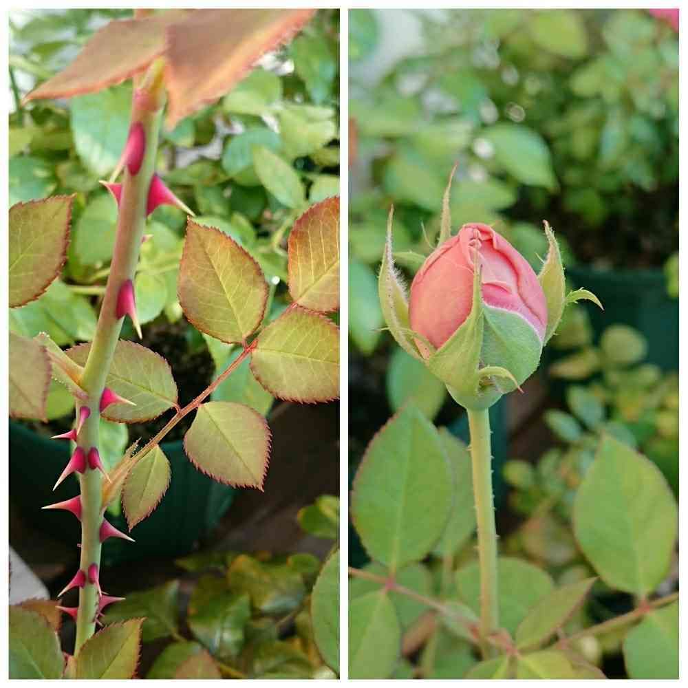 アンブリッジローズ🌹のトゲトゲが赤くて可愛い❤️トゲさえも可愛いと思えるわけで😉