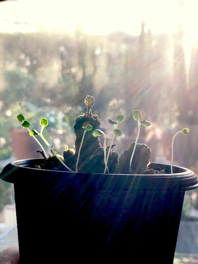 まさかタネがこぼれて発芽するとは思っても見なかったので、カイワレとばっかり…😆
