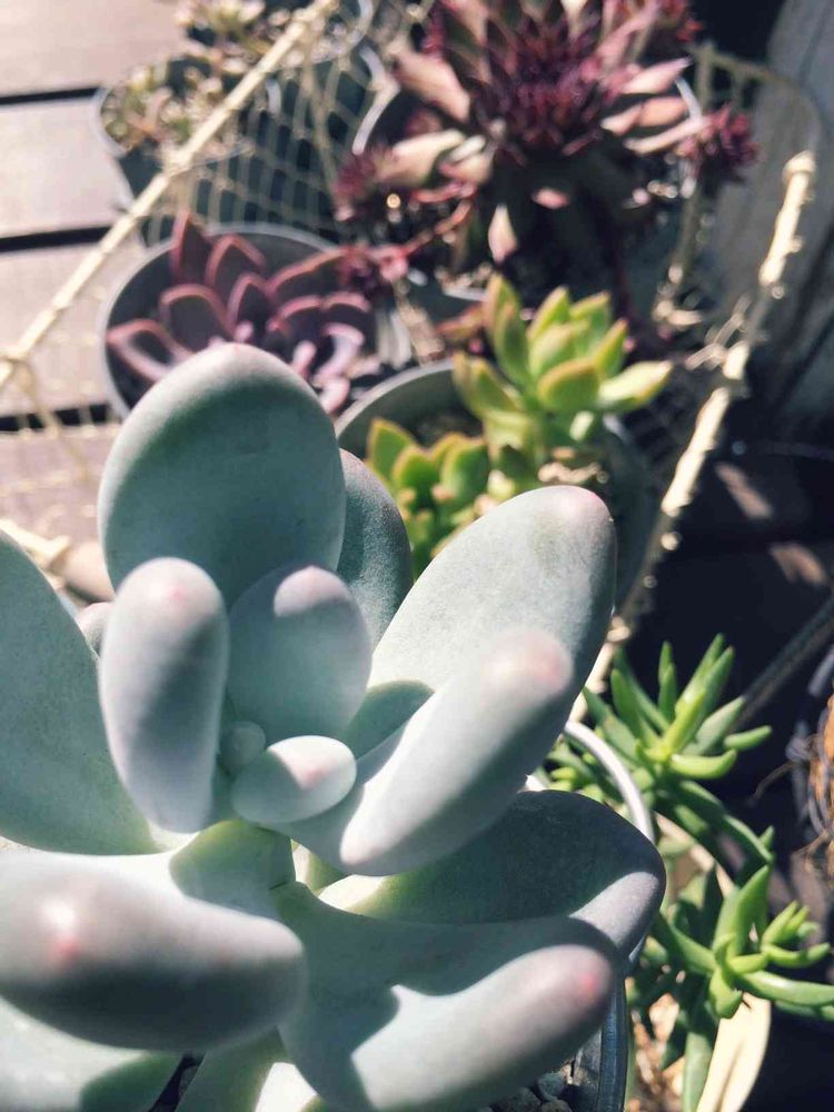 多肉ちゃんたちに朝から太陽ぎらぎら……。