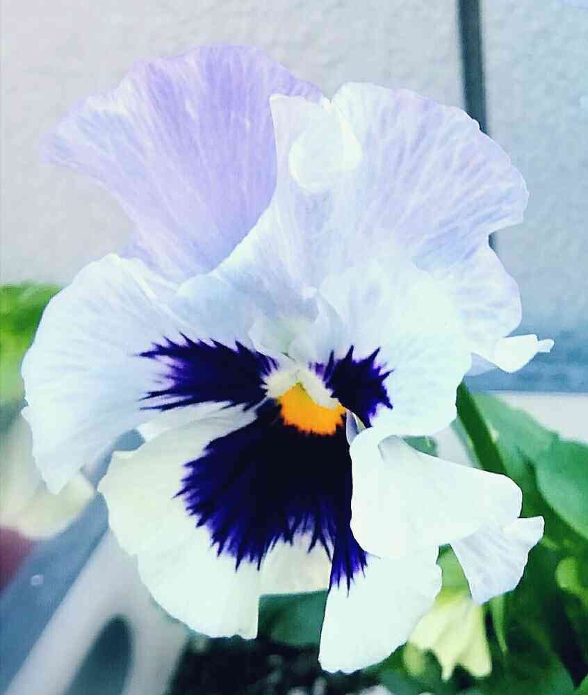 おはようございます。パンジーの白から紫そして雄しべ 雌しべのオレンジ色がとても印象的で可愛いですね。