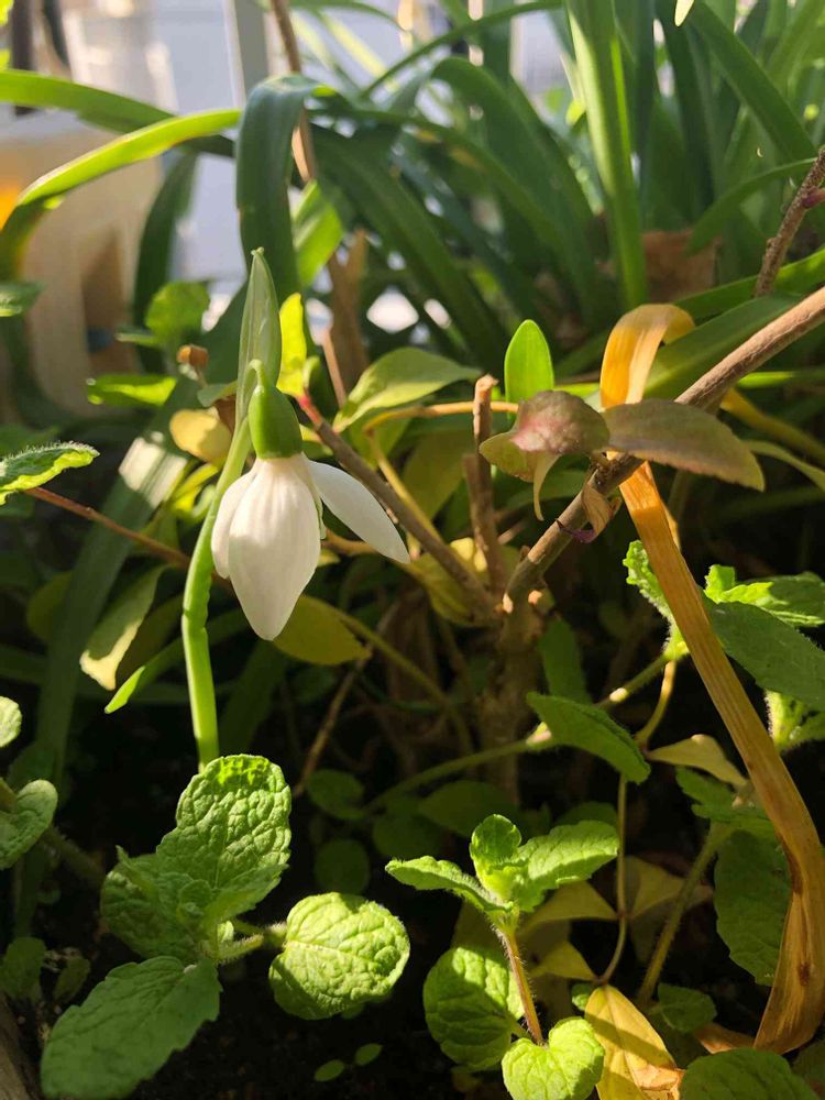 ウチの雑木林プランターに何か生えてる!と思ったらスノードロップでした✨