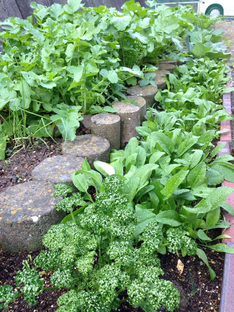 大根、ほうれん草、パセリ、近くのお年寄りにもらったキャベツの苗😄