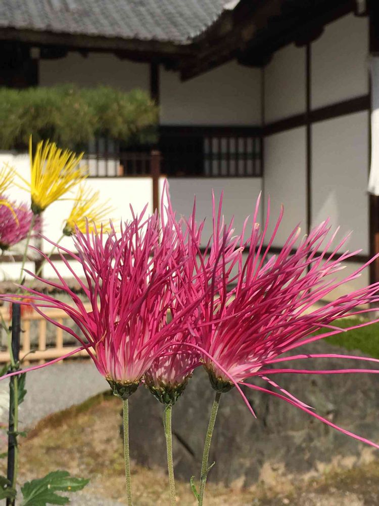 この嵯峨菊🌸「天地人」に花を配置する七五三仕立てに育てるみたいです😤
