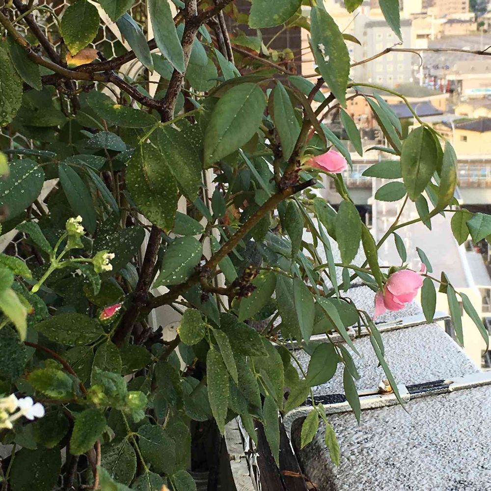 バラの二番花がやっと咲きました〜〜❤️梅雨も明けたこの時季だったっけ?風の強いベランダのコンテナ栽培です。温かい目で見てください〜〜😅