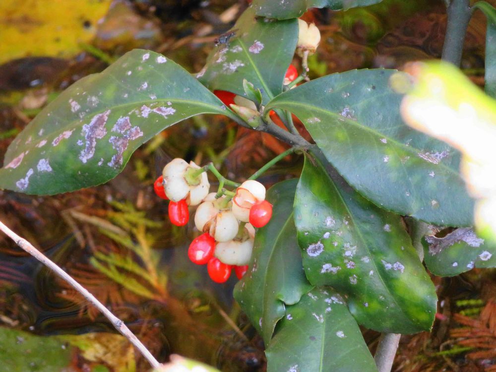 赤い実がついてる、なんだろう? ボランテアガイドさんに尋ねるとツルマサキの実。 ここで実を見たのは初めてかもしれないと教えて頂く。 私も初めてかも?