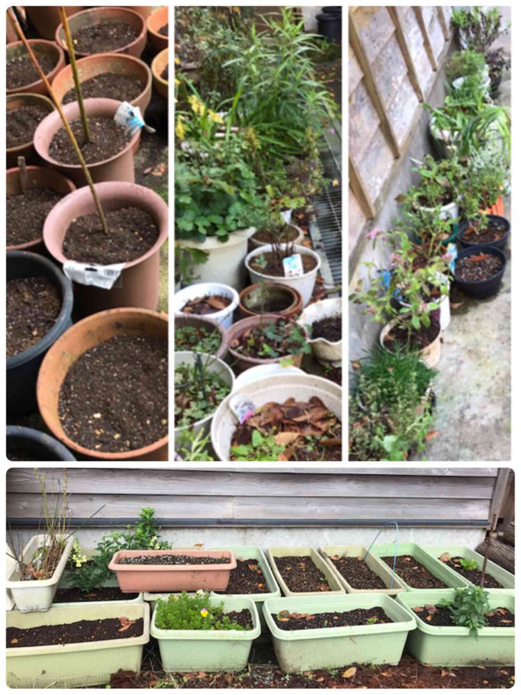 軒下組は、雪が降っても無事な物だけ置いてます😅 雪囲いは、家の前と後ろに します。