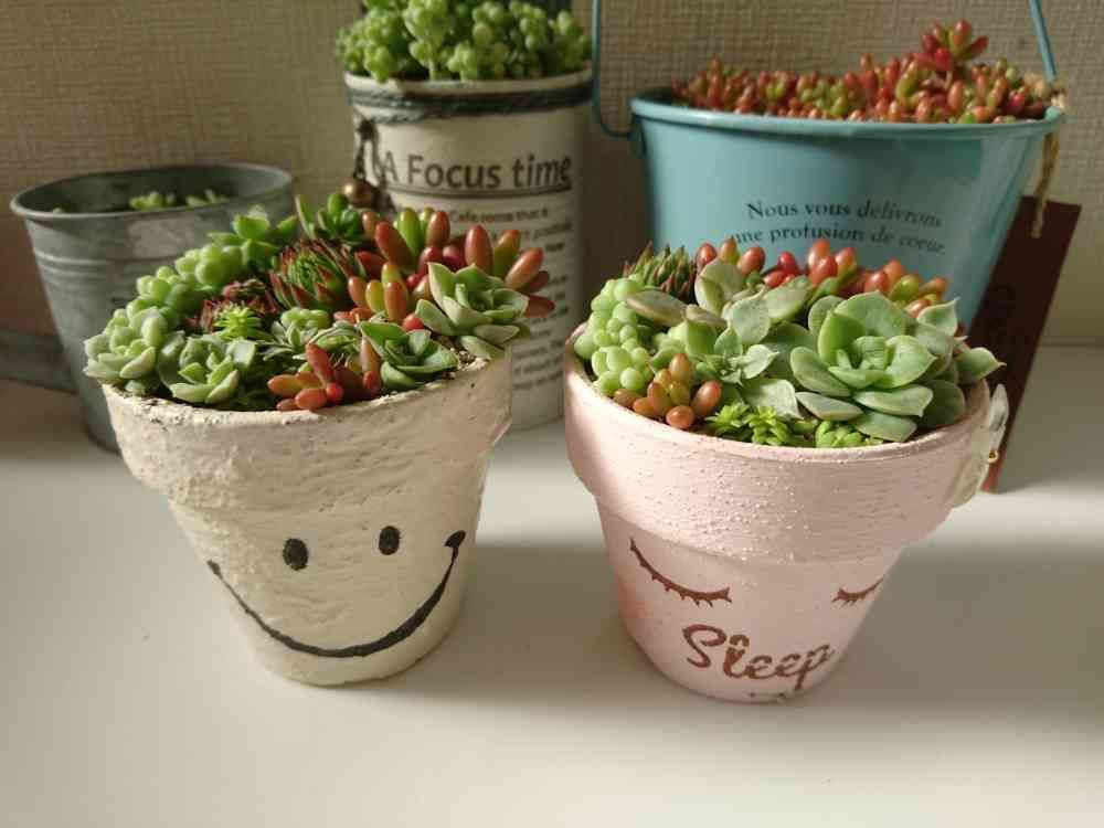 鉢やリメ缶は先月の名古屋フラリエのイベントでゲットしたもの。多肉ちゃん入れてみた😍