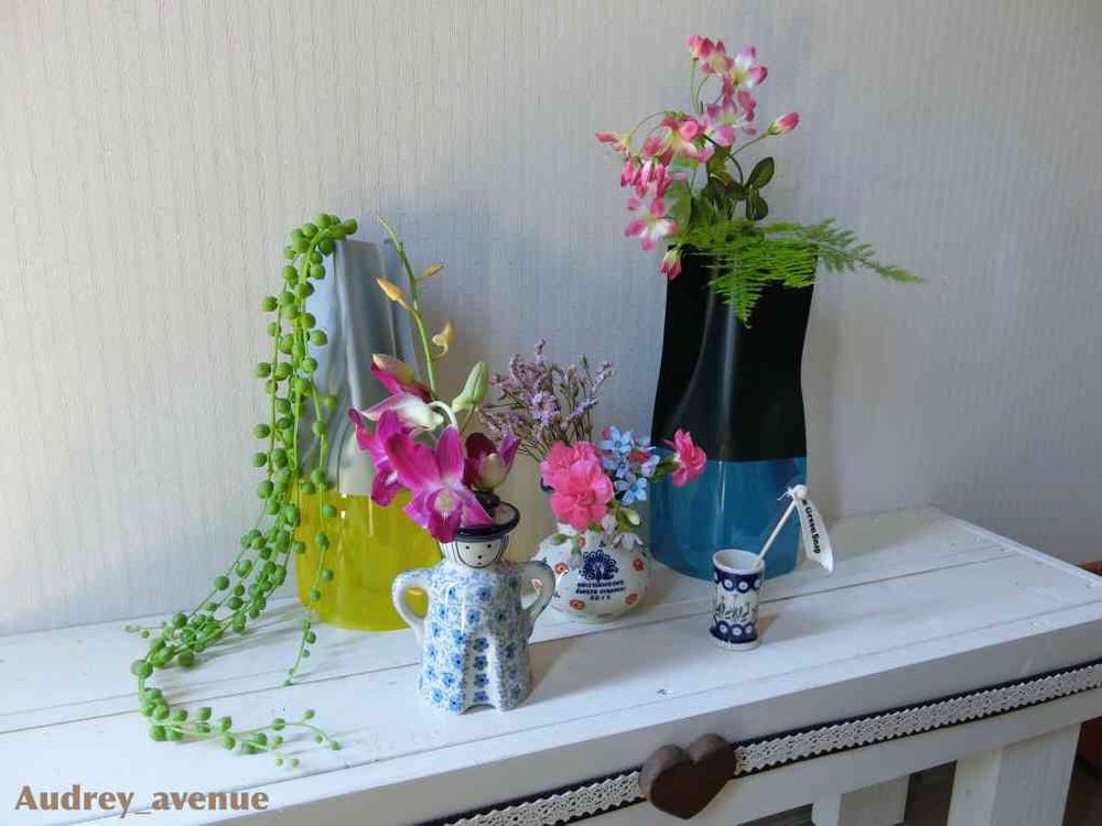 先日のフラワーアレンジメントでまだ大丈夫?そうなお花を入れました💐と、いってもフェイクもありますが…🌿