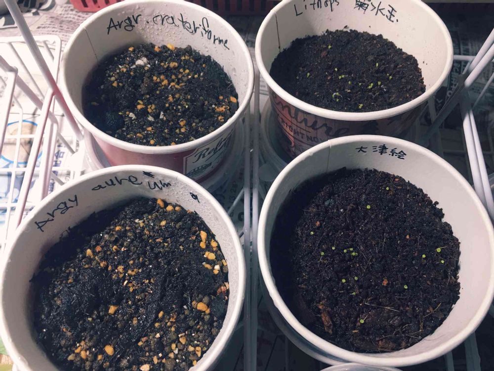 リトープスは播種して3日で発芽し始めるのに対して、アルギロデルマは10日経ってもまだ……(-.-;)
