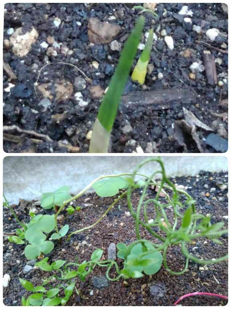 ちーちゃんに頂いたのが芽を出しました✌💗💗アスパラガスは変な形です😃(笑)💕🌿🌿