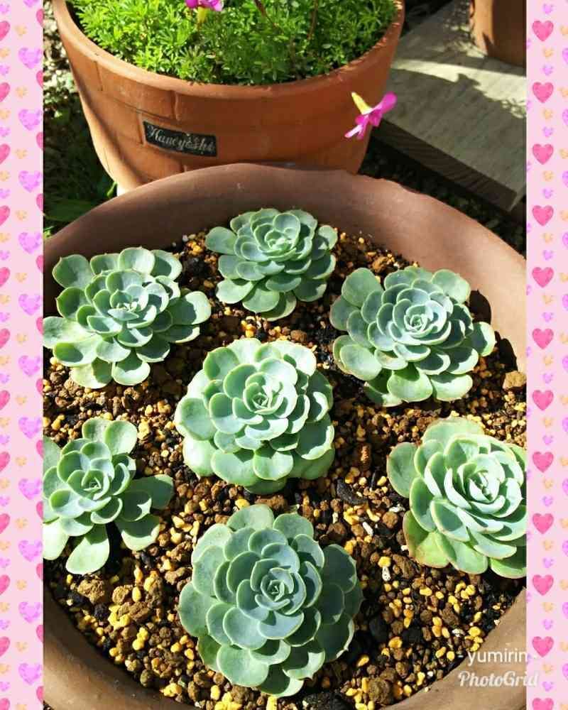 これは、多肉しだした頃、旦那がどこかで頂いたもの。真ちゅうの鍋に、植えてたやつよ🎵