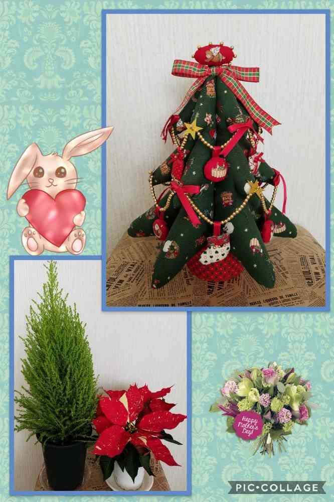 ツリー可愛いですね💖手作りもあり布で、あたたか味を感じます💕クリスマスですね💖気分はルンルン😍