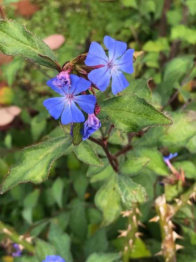セラトシグマグリーンがまだまだ爽やかなブルーの小花を咲かせ続けています。