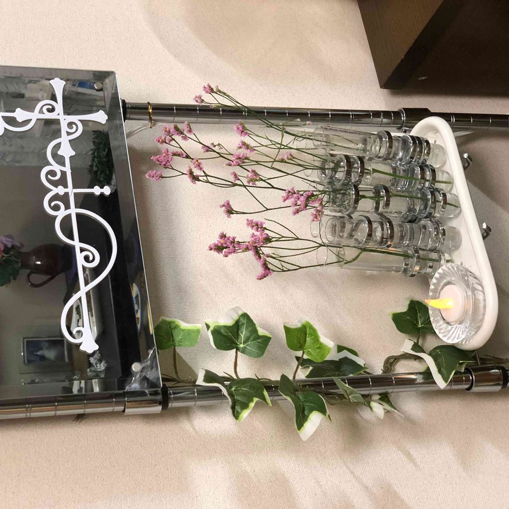 壁掛け仏壇「鏡壇ミラリエ」に今日(11/19)の誕生花の「スターチス(花浜匙)」を飾ってみました。