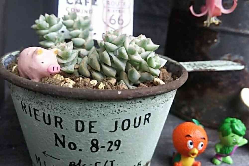 おはようございます☀️そうだったんですね。小さな雑貨を合わせると可愛く見えますね。🐷さんの鉢もきっと可愛いのでしょう☺️