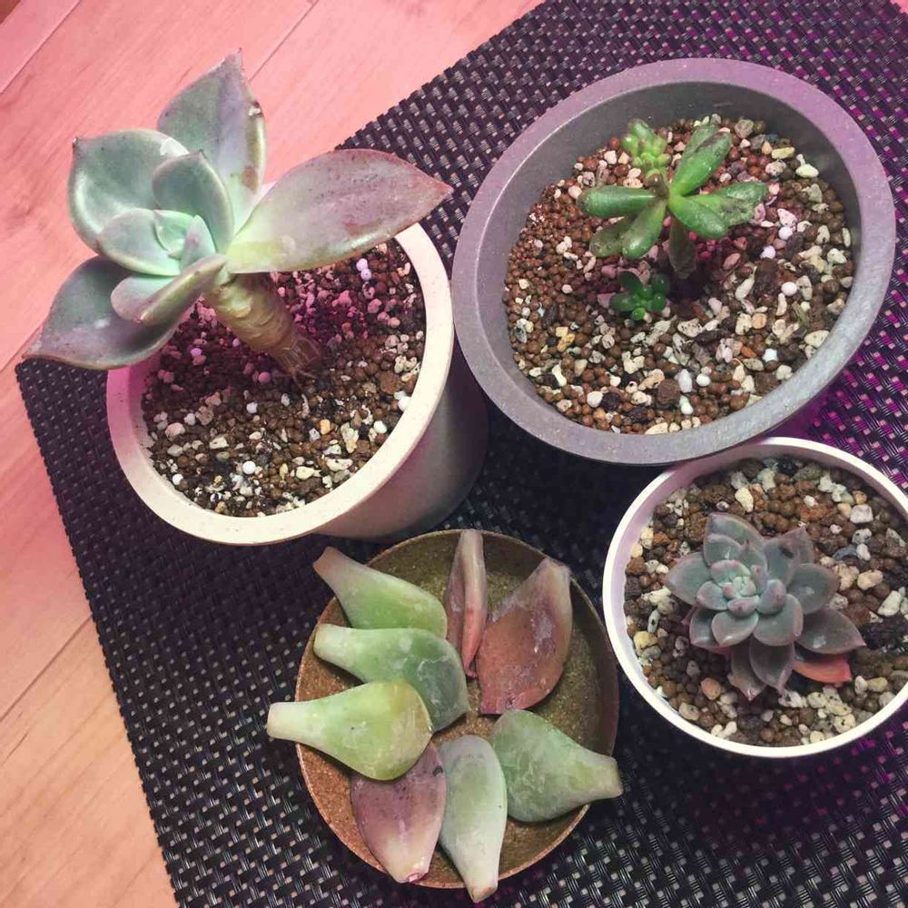 とても立派な株の寄せ植えだったけど、子株をもぎり。子株がないのは葉っぱをもぎり。