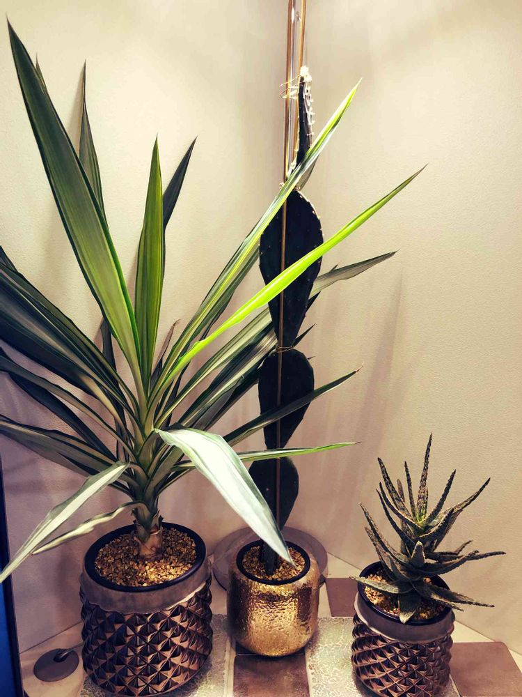 あんまり覚えてないけど夏ぐらいに買った植物育成ライト💡シルバースターは2倍以上の大きさになった気がする😳フラミンゴは二段ぐらい葉っぱ増えてまだまだ大きくなりそう💡ウチワサボテンは夏場外でウチワ3枚増えてかなり不安定やったけど植え替えて真鍮の棒と針金で支えしたらかなりかっこ良くなったので育成ライトコーナーに引っ越した😊💡また増えるかな⁇😊