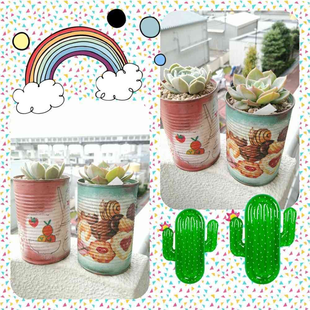 このリメ缶が届いてしばらくは飾ってて~その後ハンドメイドの道具が入ってたんだけど~ポイントが流れる~って友だちから連絡来たのでポチって貰った子達が届いて😁✴あ!!これはこのリメ缶に植えたい😚💕って植え替えしてみたら可愛くてたまらない😂💖