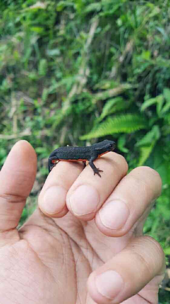 草刈りしてたらアカハライモリの赤ちゃんがいました✨