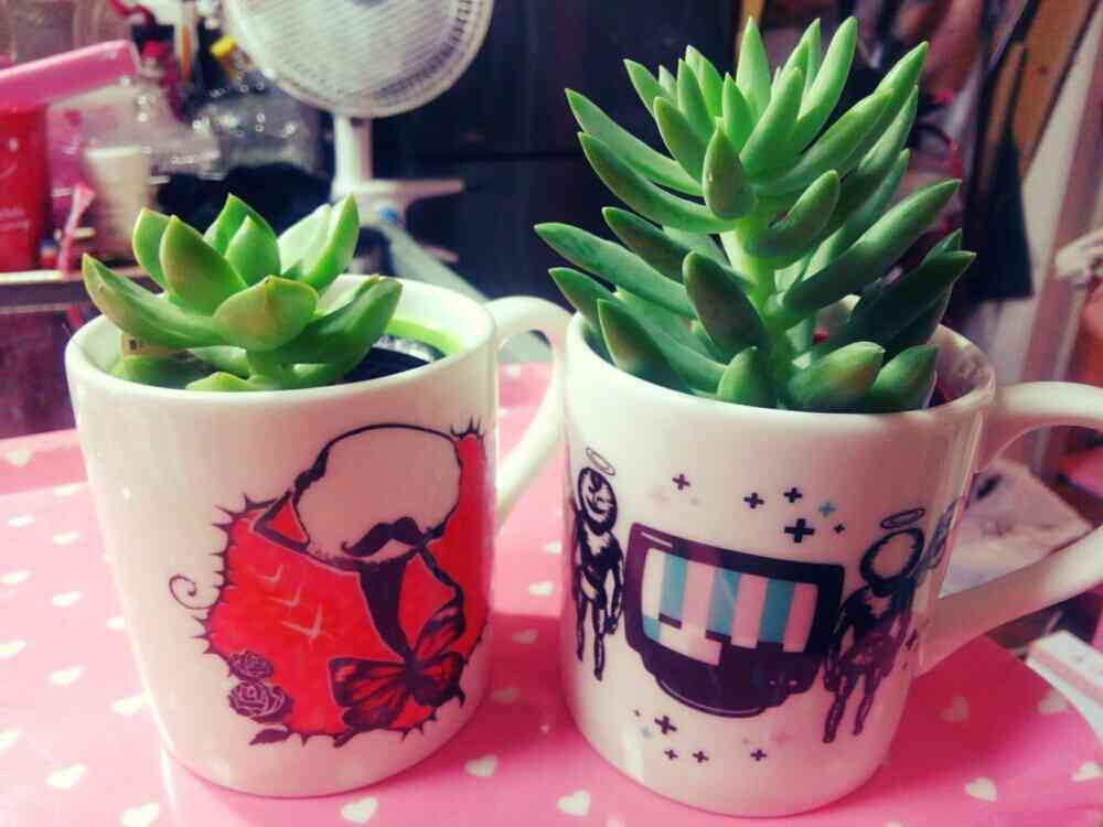 おお~(*´∀`)🍀マグカップに植えたんですね🎵お店の商品みたいに素敵です🎵d=(^o^)=b