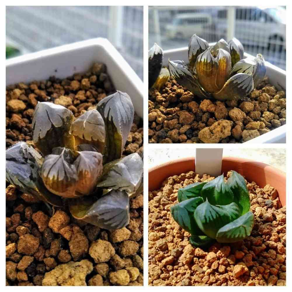 8月にヤフオクからお迎えしたハオルチア44号こと🌵水晶🌵さん。お迎えした当時のミドリンから渋い色に(゜o゜;この子はミドリンの方がいいみたい…室内に入れたので戻るかな~チビ苗なので大きくなるのが楽しみです❣️