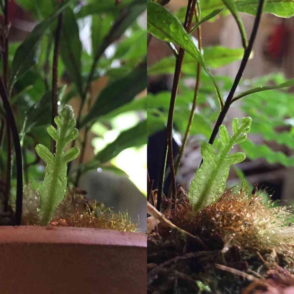 胞子培養のrigidulaから基部の太い葉が出始めた。これはそろそろ初シールド来るか…?