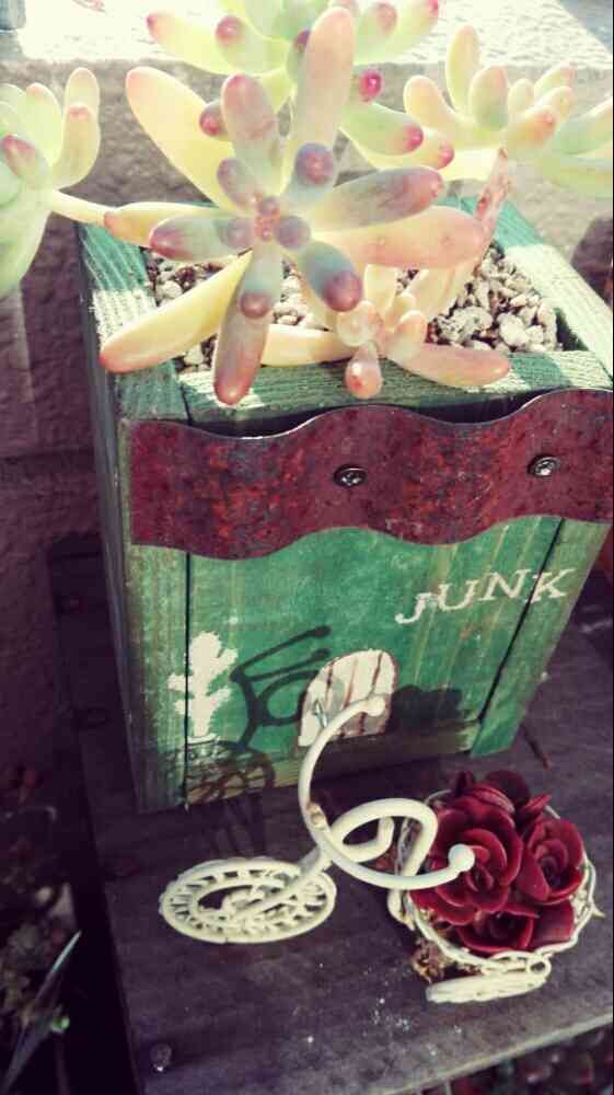 自転車の籠にはセダム💕