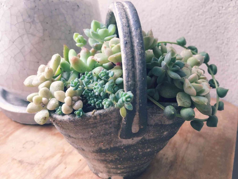 かわいい鉢に、ぎゅうぎゅうに多肉ちゃんがつまっていて。