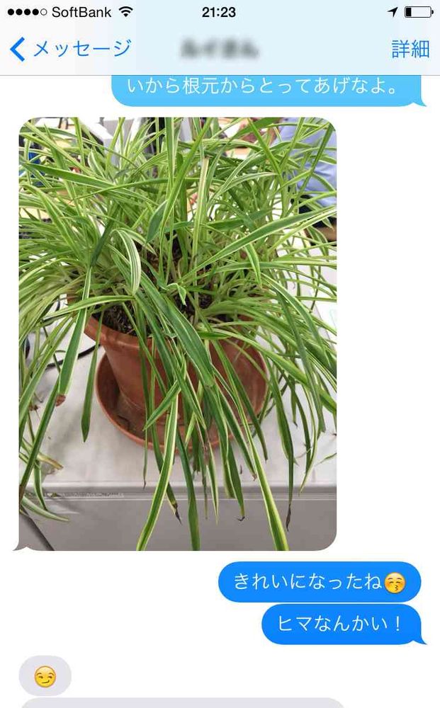 [@id:2930] さん♪ キレイになったオリヅルラン?を見て自分の植育の成果を噛みしめたのですが、仕事中ということにハタと気付いた(*`エ´*)