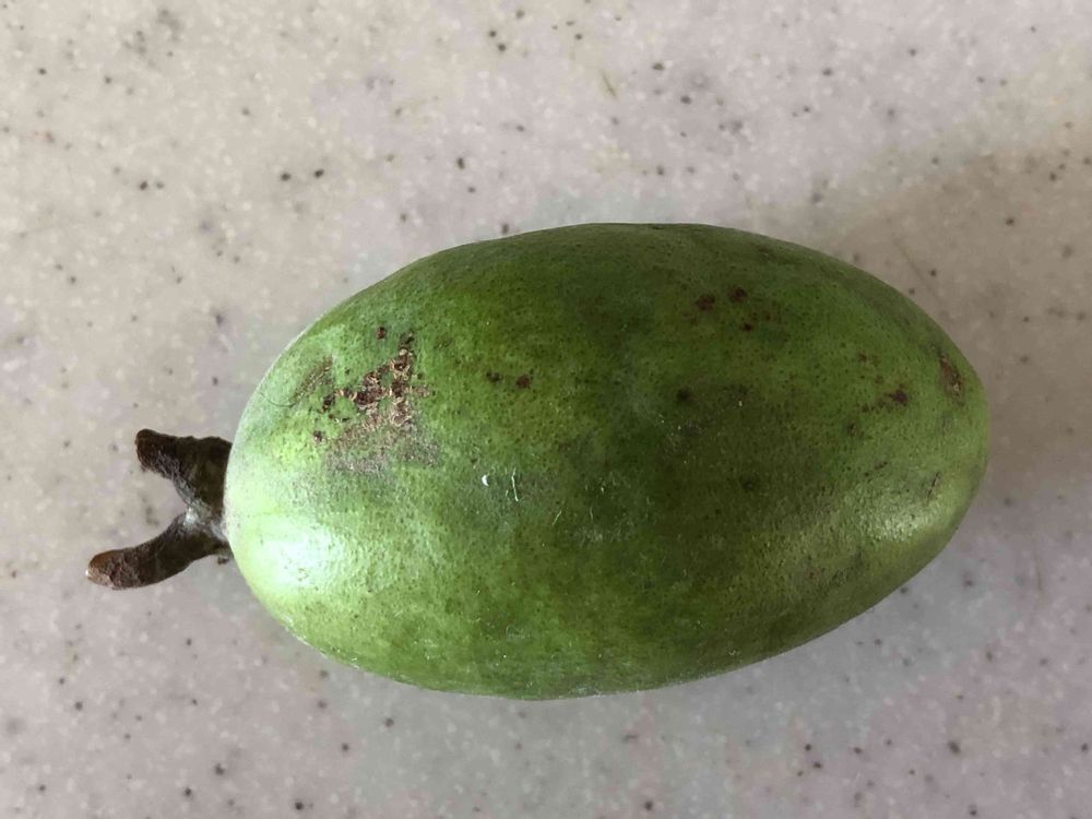 なんと植えてから8年で初めてフェイジョアの実がなりました! これは今日自然落下していたのを拾ったもので、1週間ほどおいて熟してからいただきます。この前食べたのはとても甘くて美味しかったです♪
