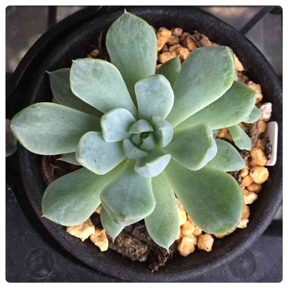 小さい株。子株もこんにちは。夏が越せるかな…。どのエケベリアも徒長気味&粉落ち気味です。日照時間が足りないのは、梅雨だけのせいではないかも。