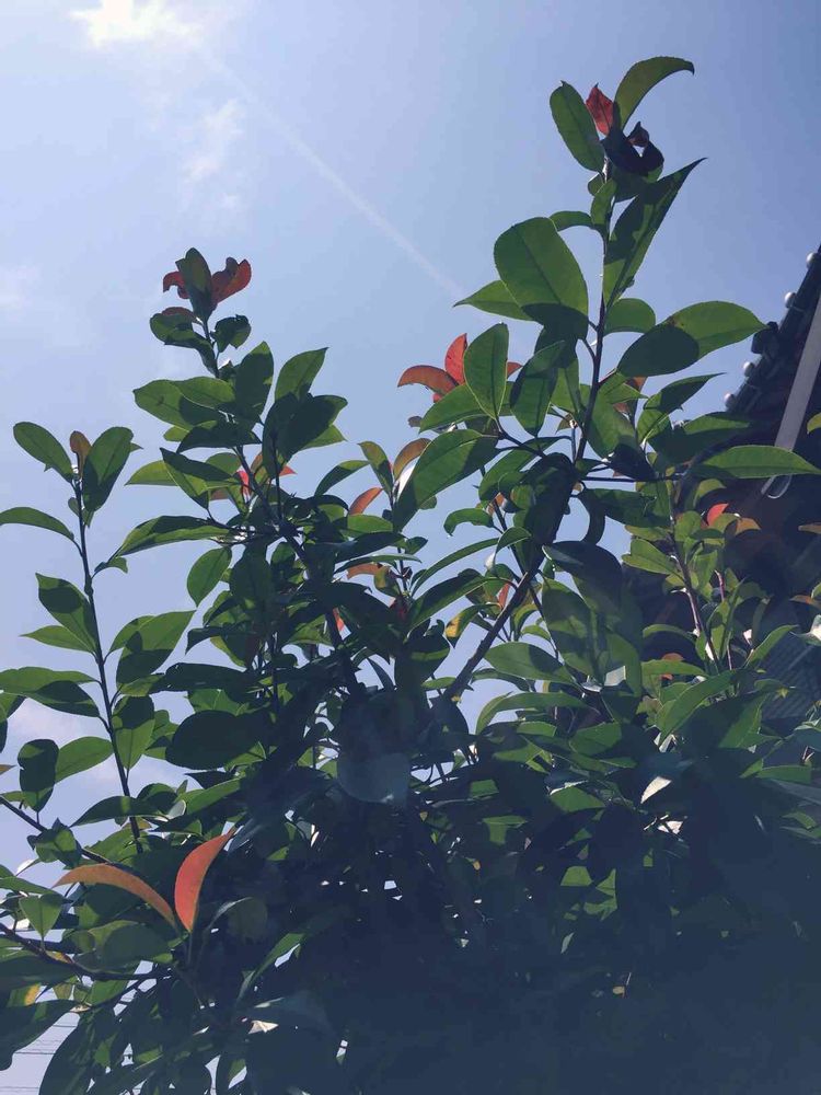 ベニカナメモチ:通称アカメは、春にも枝先が紅くなるけどこの時期は成長期でまた紅くなってます❣️