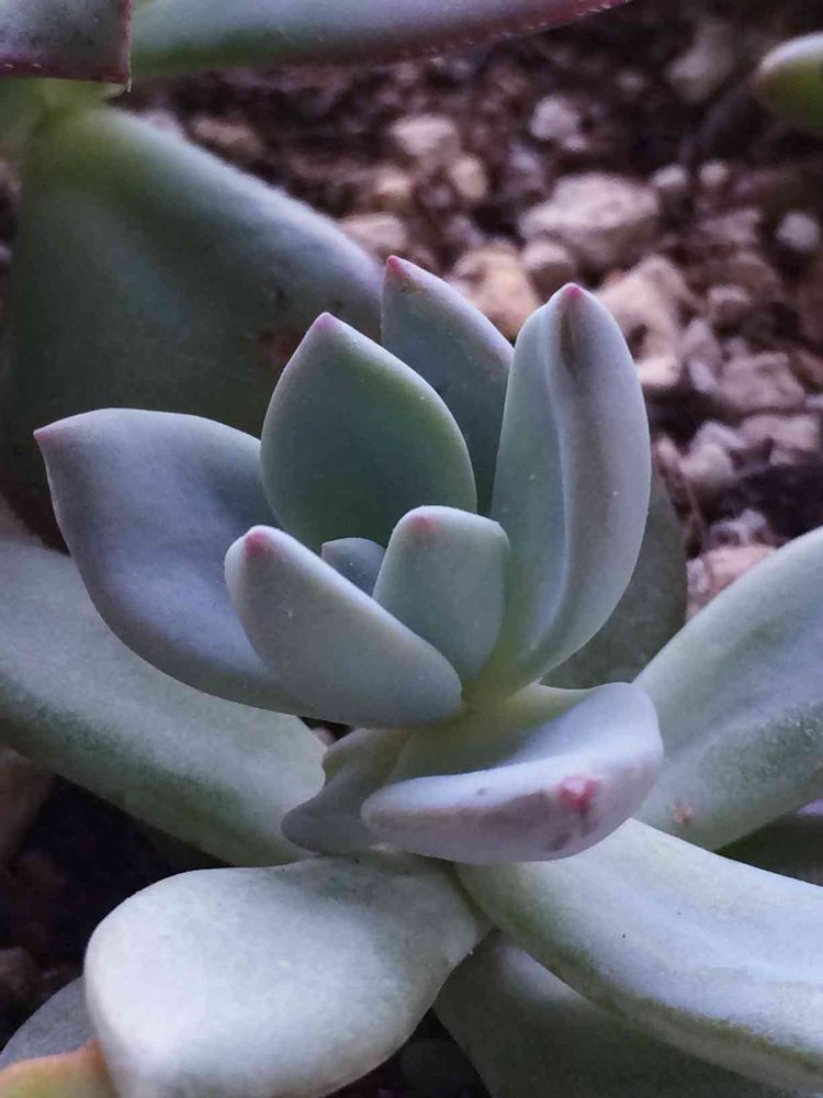 緑でしたが、日に当てて薄紫っぽい新芽?がにょきにょきでできました。
