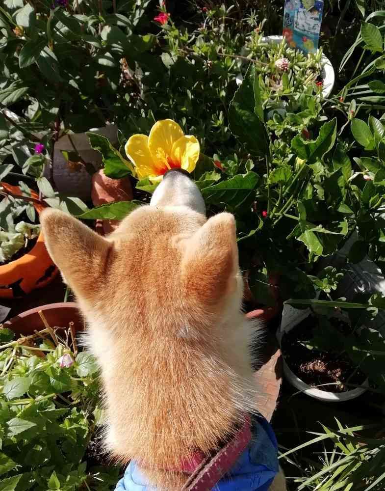 夏の写真ですが我が家の愛犬がハイビスカスに寄り添いおはようのあいさつ…。picは夏でもこれから寒く🧣🧥なります。皆さんお体を大切に😀