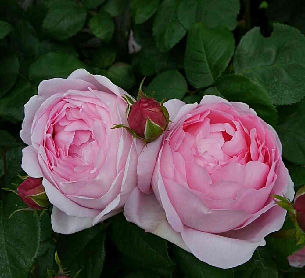 寄り添ってピンク色と赤い💖ツボミ可愛い💕