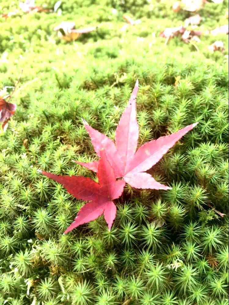 コケの上で、可愛い🍁が寄り添ってる~😆