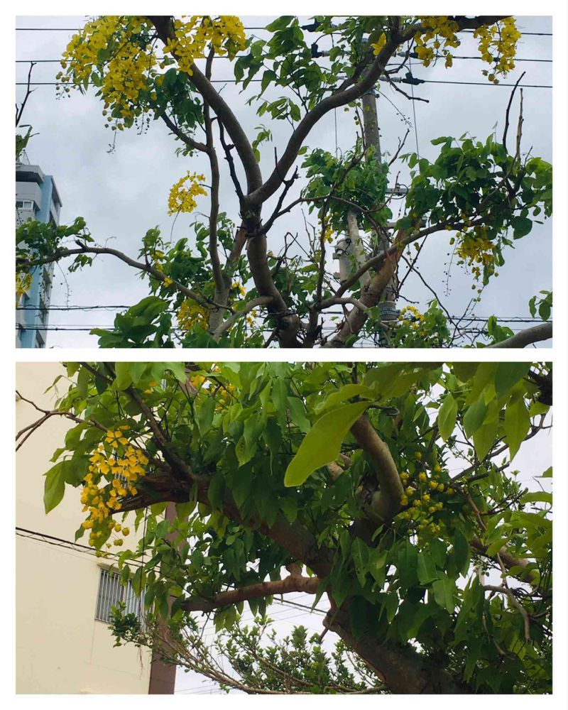 公園の2本あるうちのゴールデンシャワーの木。一本は満開。もう一本も咲き始めました。