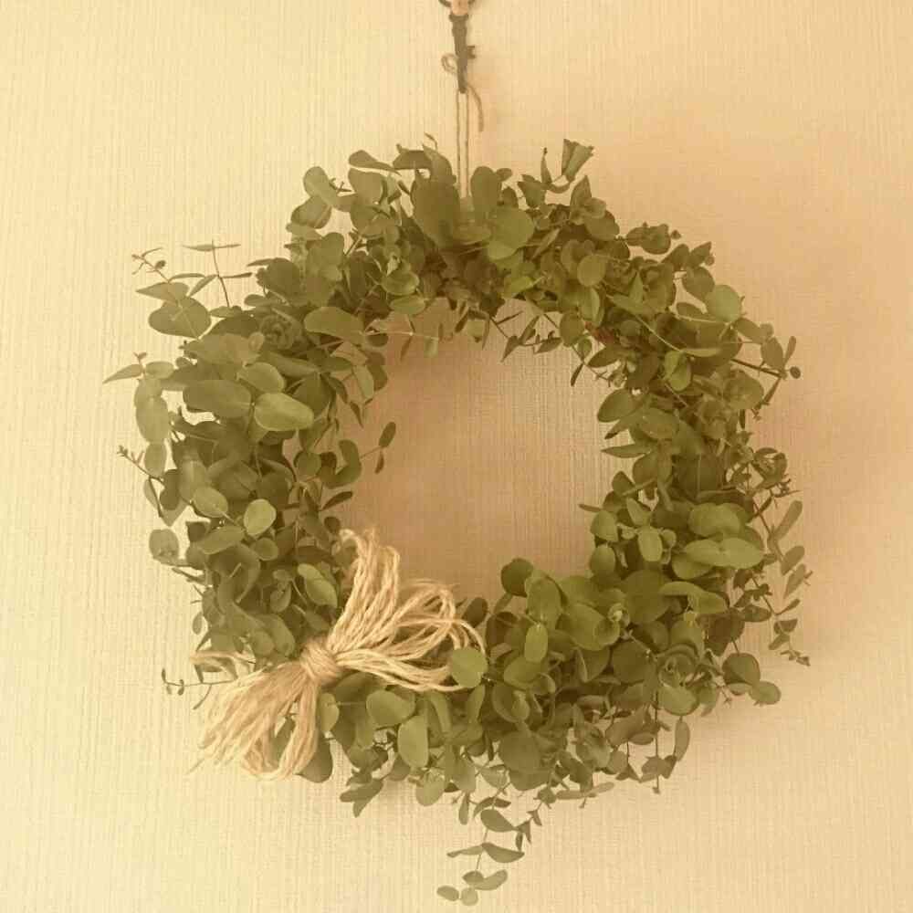 ワっサワサだった丸葉ユーカリを先日剪定しました。ドライにし、リースになりました(^-^)