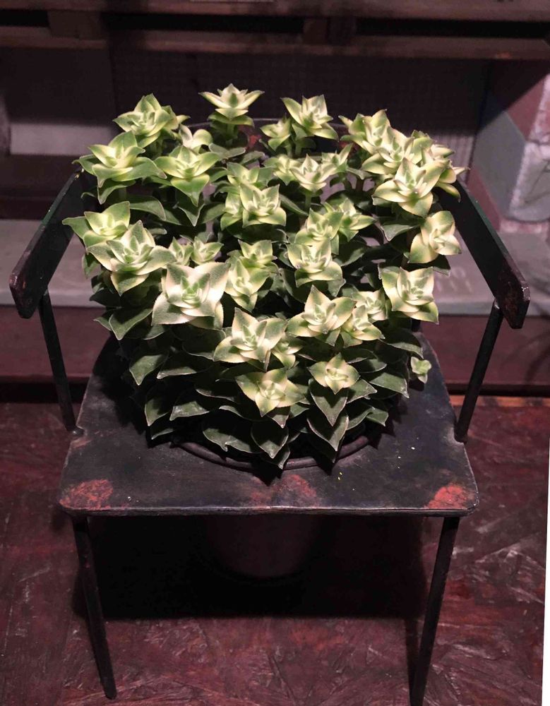 椅子型スチール鉢に"パーフォレータヴァリエガータ"… 名前が長い😂💦