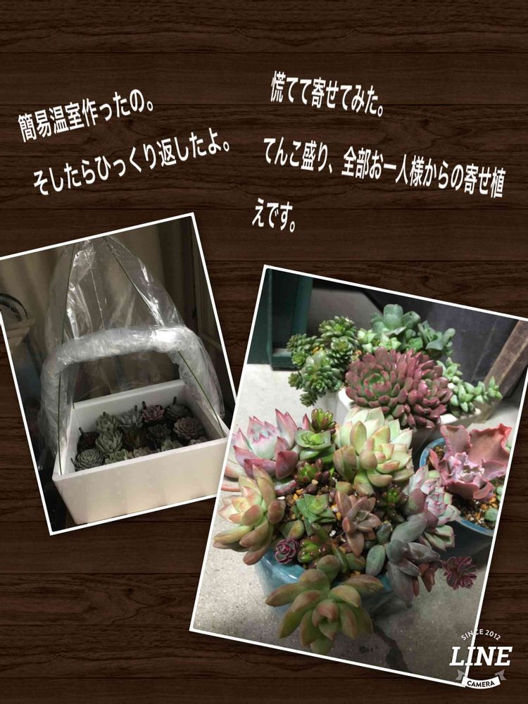 一昨日発泡スチロールの箱で簡易温室作ったの。なかなかいいじゃん!って多肉ちゃん入れて日中お外に置いて、夕方中に入れようとしたら箱のフチがもげてガシャーン!